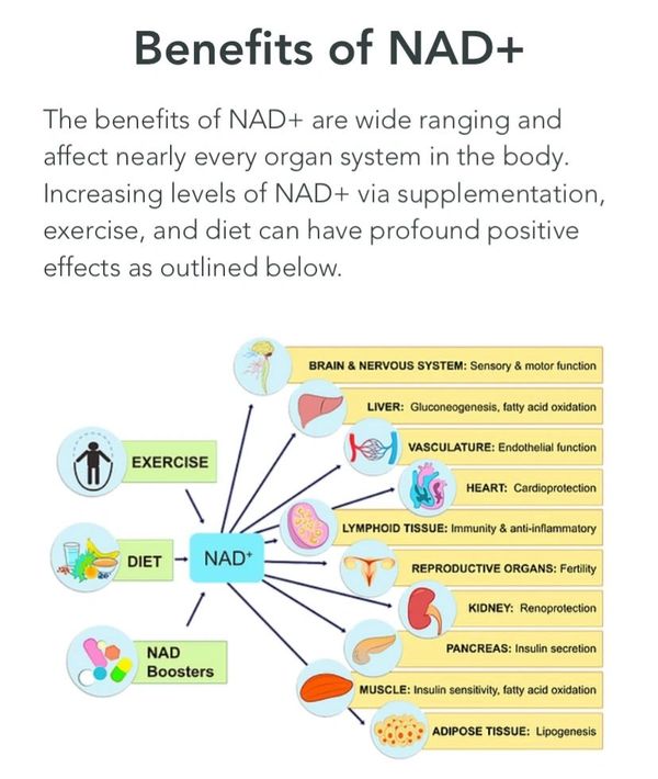 Nicotinamide adenine dinucleotide (NAD+) is a coenzyme present in almost all cells in your body. Its main purpose is to fuel metabolic reactions forward, similar to gas in your car. Without NAD+, your cells won’t be able to metabolize carbohydrates, fats and amino acids. NAD+ also plays a significant role in gene expression linked to age-related diseases.
